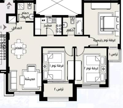 التقسيم الداخلي: 3 غرف نوم+ 2 حمام +مطبخ +ريسبشن +2 تراس