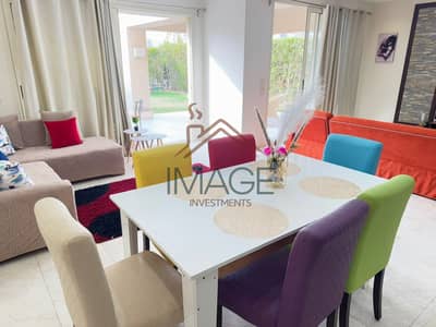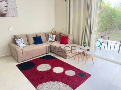 للبيع جونيور شاليه في هاسيندا باي أرضي بحديقة متشطب ومفروش بالكامل خطوة من حمام السباحة موقع مميز جدًا