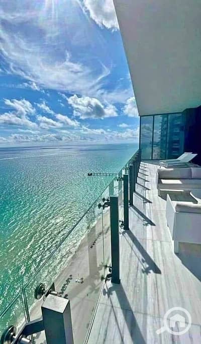 علي البحر مباشراااا فيو بالكامل بحري شقه ب ابراج العلمين تشطيب فندقي علي السكن مباشرا بالتكيفات والمطبخ