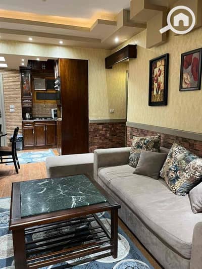للايجار مفروش شقة دور ارضي فى عمارات المستقبل مكيفة بالكامل مكونة من ٢ غرفة وحمام ومطبخ ورسبشن تشطيب راقى