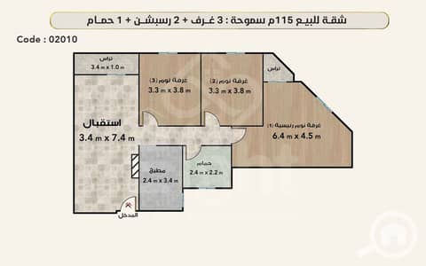 شقة للبيع 115 م سموحة (ش كمال الدين صلاح )