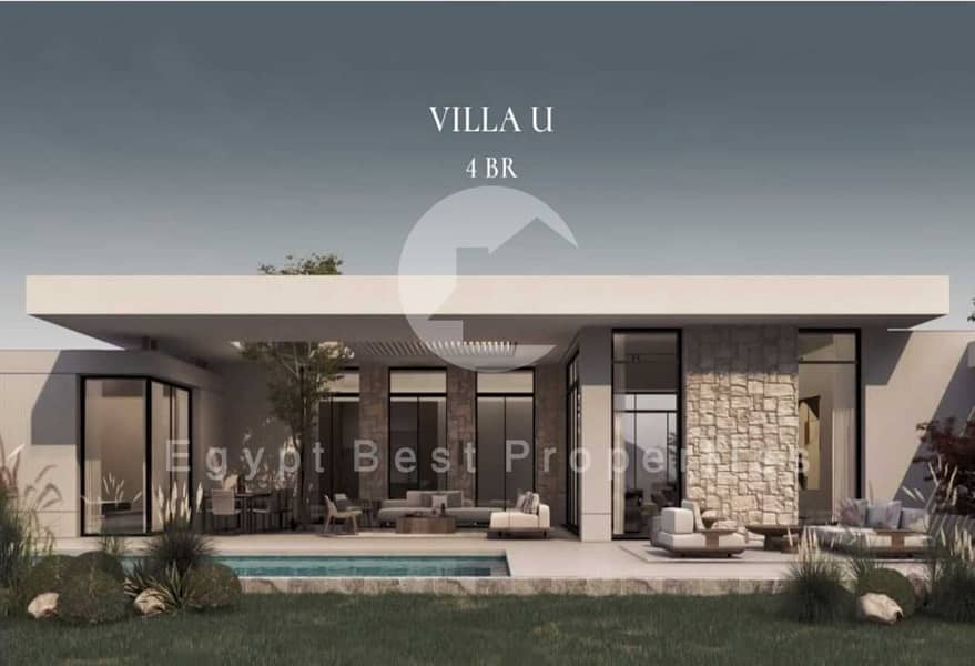 فيلا من طابق واحد جاهزة للتسليم خلال سنتين، مزودة بغرفة زجاجية ومسبح خاص. فلل للبيع في تلال وان، فلل للبيع في زايد الجديدة.