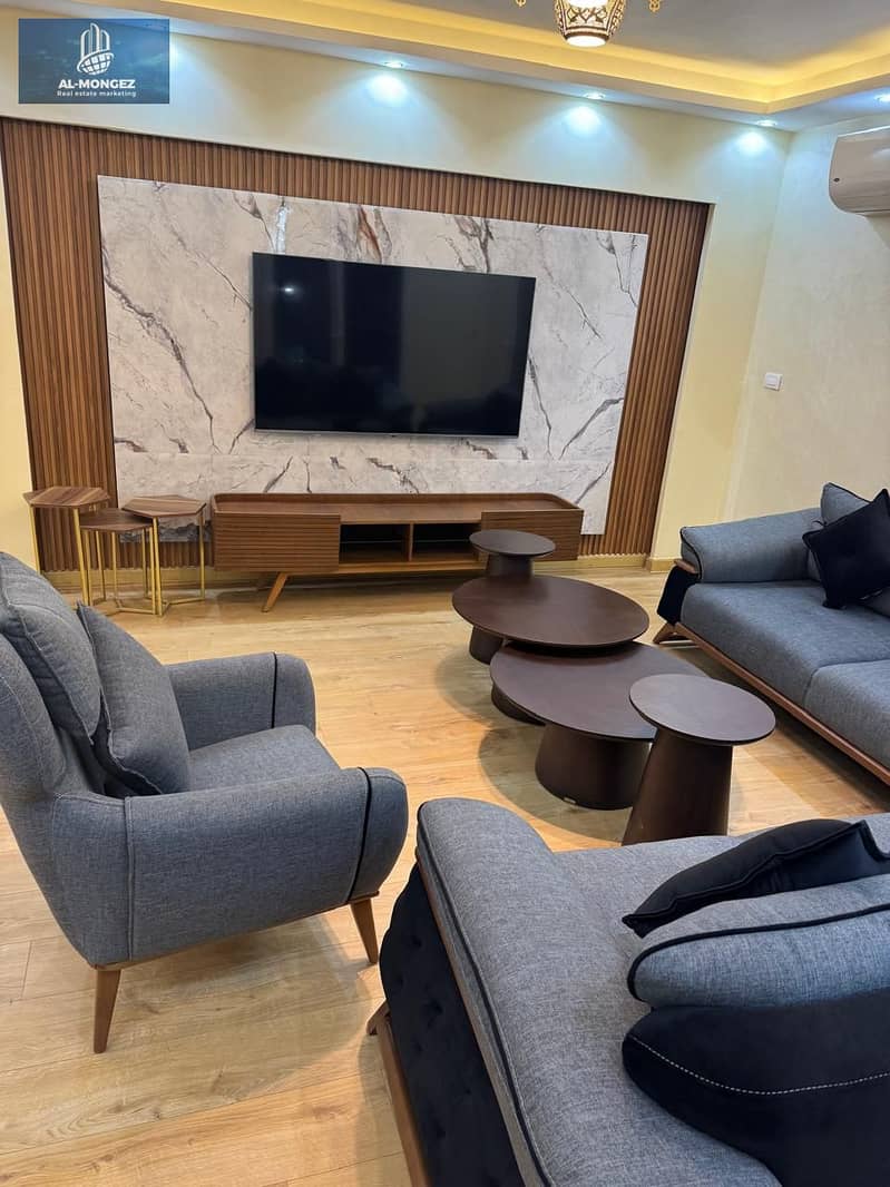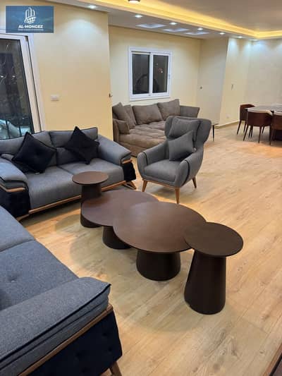 متاح شقه مفروش في الرحاب الترا سوبر لوكس للايجار مساحه 200 متر ارضي بجاردن في ارقي مراحل الرحاب