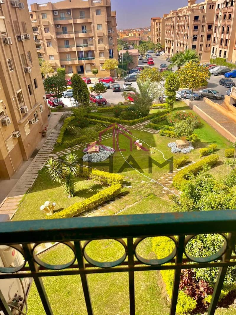 شقة مفروشة للايجار ١٠٥ متر بكمبوند الأشرفية خلف ووتر واي و ريفر ووك مباشرة الدور الاول واجهة بحري فيو مفتوح على حديقة جميع الاجهزة الكهربائية والفرش - مكيفة بالكامل غرفتين وريسبشن وحمام ومطبخ وبلكونة