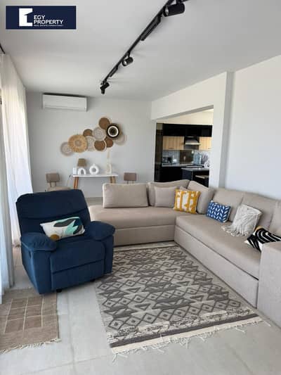 شاليه للبيع بروف مفروش إستلام فوري إستلام فوري في هاسيندا باي بالم هيلز الساحل الشمالي