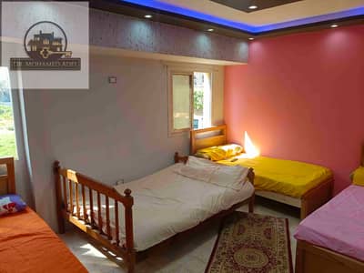 شقه دور اول بجوار شط اكسجين مكونه من غرفتين وصاله وحمام ومطبخ بها 6 سراير وانتريه ومطبخ جميع الاجهزه الحديثه ثلاجه توشيبا وبوتجاز كريازي وشاشه ودور ارضي 3 غرف اتنين حمام و6 سراير وچميع الاجهزه ومخيم في التراس