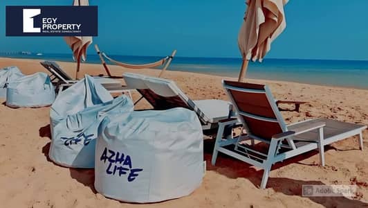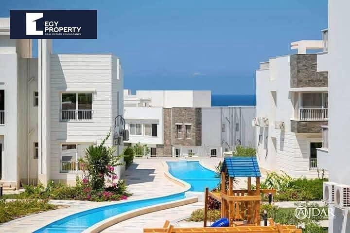 دوبلكس للبيع 140م بالتقسيط تشطيب كامل مباشرة علي البحر في أزها الساحل الشمالي مدار