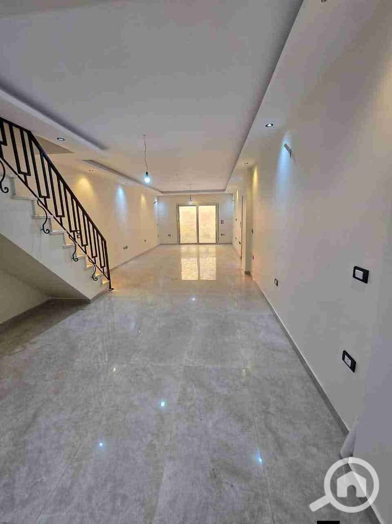 الشقة امامي 185 متر مع روف مفتوح بسلم داخلي, صالة كبيرة جدا, 3 غرف , غرفة نوم ماستر وغرفتين اطفال, 3 حمام وحمام رابع في الروف