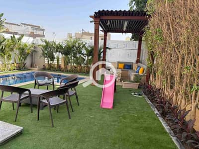 حديقه كبيره مجهزه ببرجوله خشبيه وحمام سباحة وكابينه شاور