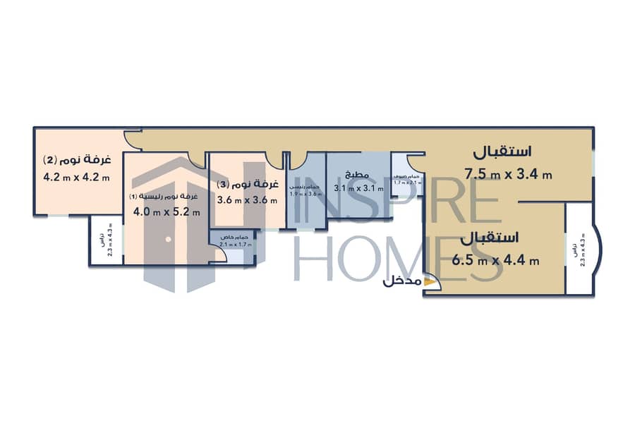 • 3 غرف نوم (منهم غرفة ماستر) - 4 ريسبشن - 3 حمام