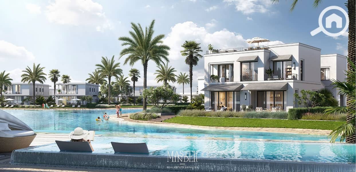 فيلا مستقله للبيع متشطبه بالكامل موقعها مميز تطل على اللاجون على اقساط حتى 2029 فى سول الساحل الشمالى - اعمار مصر