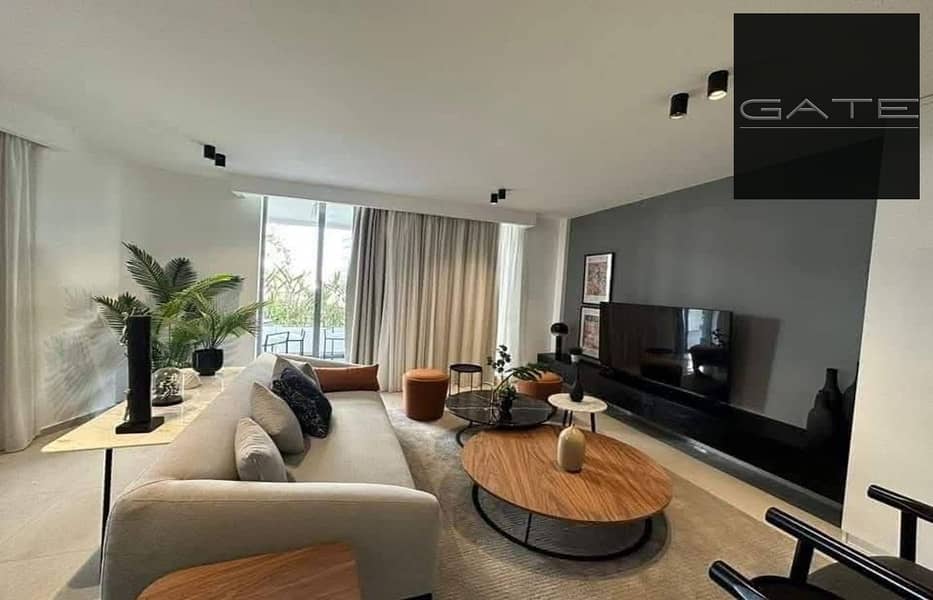شقة ارضي بجاردن كبيرة للبيع في ديستركت 5 التجمع الخامس - بتشطيب الترا سوبر لوكس - على بعد 8 دقائق من الجمعة الامريكية والتسعين الجنوبي - استلام 2026