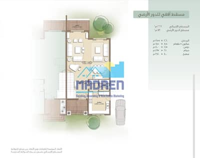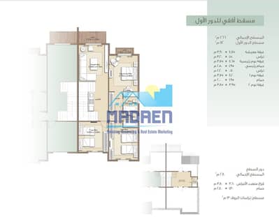 الدور الأول: 3 غرف نوم (منها غرفة ماستر)، غرفة معيشة (ليفنج).