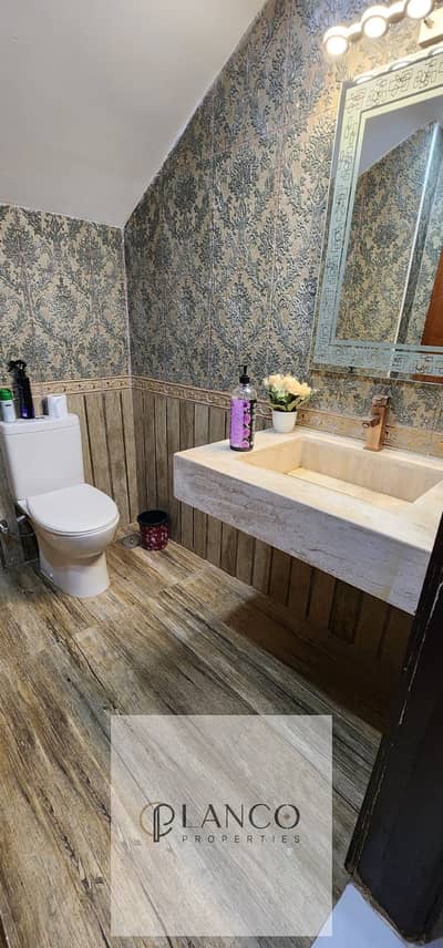 الدور الأول: 5 غرف (منهم ليفنج كبير جدًا + غرفة ماستر بدريسنج وحمام) + حمام إضافي للغرف + تراس كبير جدًا مع فيو على لاند سكيب وشارع الصفا الرئيسي
