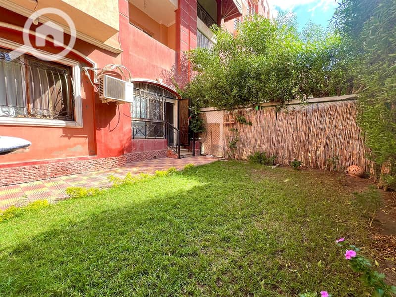 شقة للإيجار مفروش دور أرضي بحديقة رائعة بكمبوند روضة زايد بالشيخ زايد