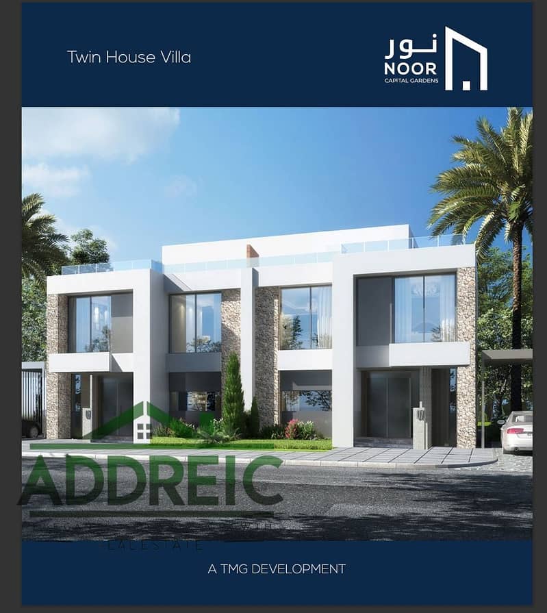 فيلا توين هاوس نموذج tw للبيع فى مدينه نور مساحتها 350 متر ارض و 250 متر مبانى فى ارقي اماكن مدينه نور متاحه للاستلام فى شهر يونيو القادم