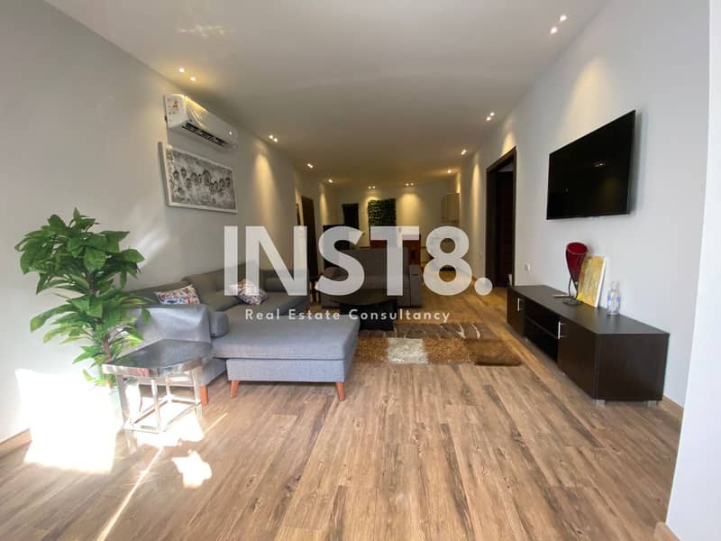 ارضي بجاردن للايجار مفروش مودرن بكمبوند ليك فيو ريزيدنس