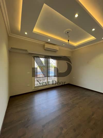 بجوار الجامعة الامريكية شقة بحديقة تشطيب فاخر بالتكييفات موقع مميز بالقرب من مطار القاهرة