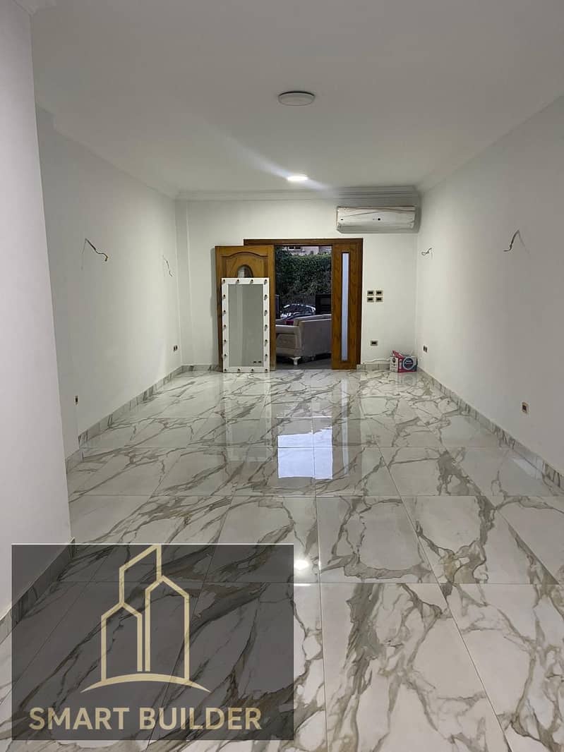 شقة ارضي مرتفع للبيع كومباوند النخيل التجمع الاول تشطيب الترا سوبر لوكس موقع متميز