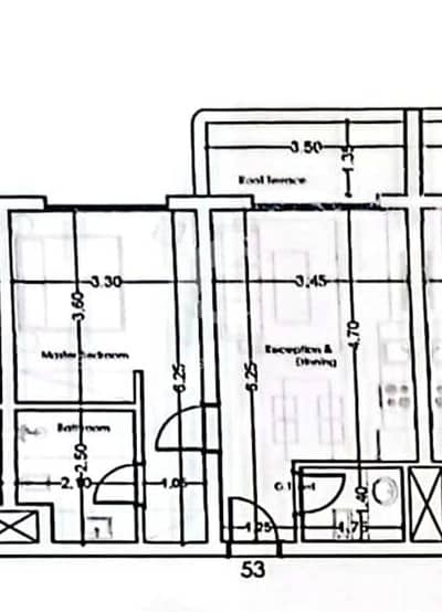مساحة 58.5 متر : غرفة نوم واحدة + 2 حمام