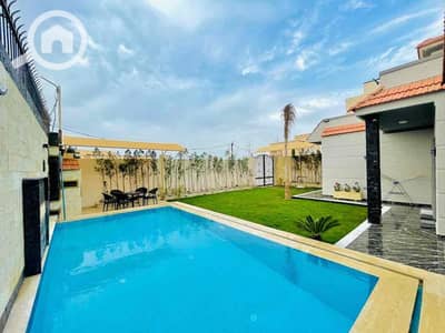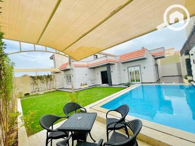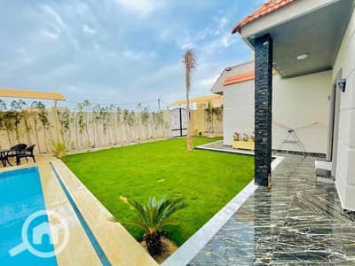 مطبخ امريكاني مجهز باحدث الاجهزه جنينه وحمام سباحه منسقين على الفيلا