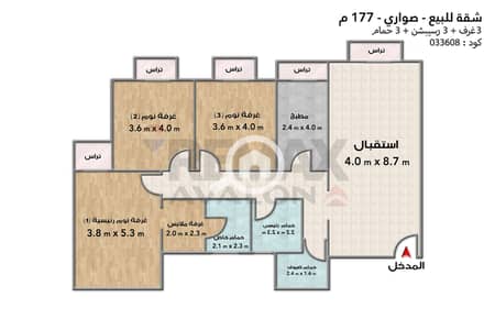 شقة للبيع 177 م (صواري) - 7,800,000 ج - الوكيل / عمرو حمدى