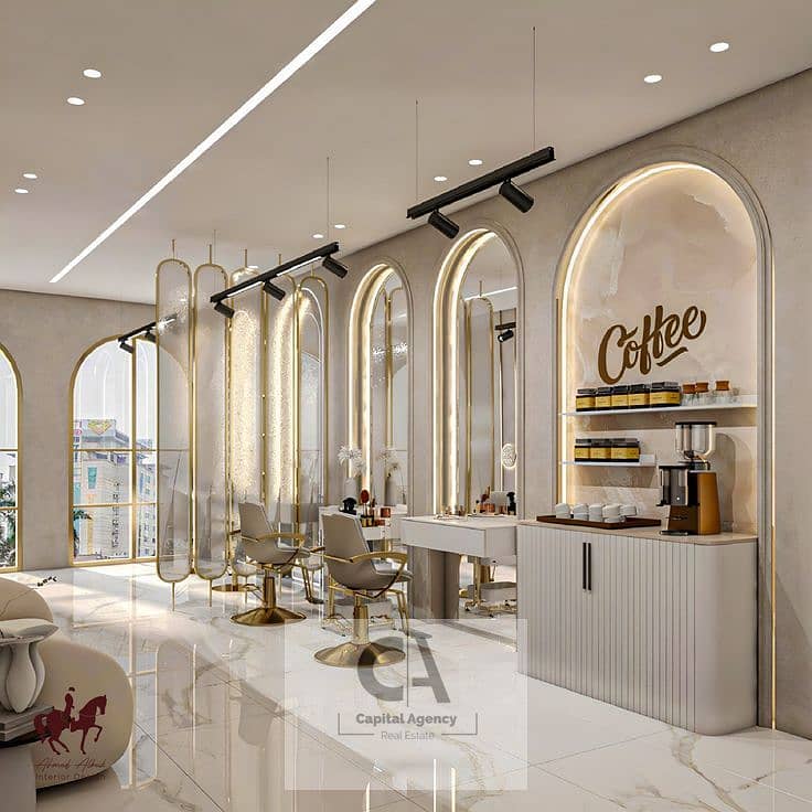بيوتي سنتر للايجار 120م ارضي_ واجهة _ متشطب بالكامل قريب من waterway _ التجمع الخامس