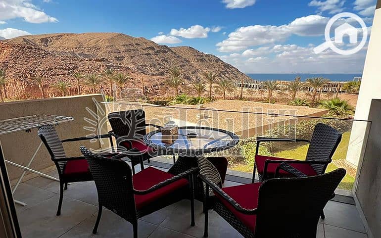 شالية مميز للبيع فيو مباشر علي البحر مفروش بالكامل بالاجهزة والتكييفات استلام فورى في المونت جلالة العين السخنه