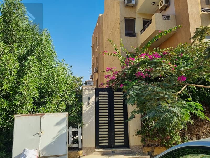 شقة ايجار ارضي بجاردن مفروشة بالكامل في كمبوند الخمايل الشيخ زايد مساحة 150 متر بتقسيمة 3 غرف 2 حمام منهم غرفة ماستر موقع قريب للخدمات والمول