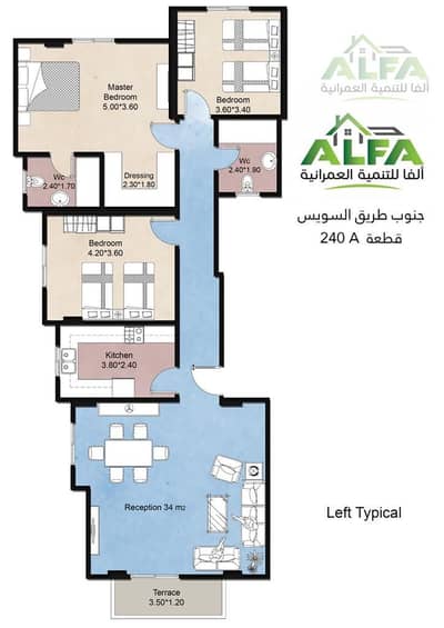 - التقسيم: 3 غرف نوم – 2 حمام – ريسبشن كبير