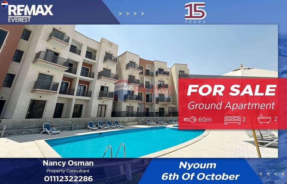 شقة أرضي مميزة داخل كمبوند نيوم بتقسيم عملي وحديقة خاصة وإطلالة مفتوحة على حمام السباحة والمساحات الخضراء، مناسبة للسكن أو الاستثمار.