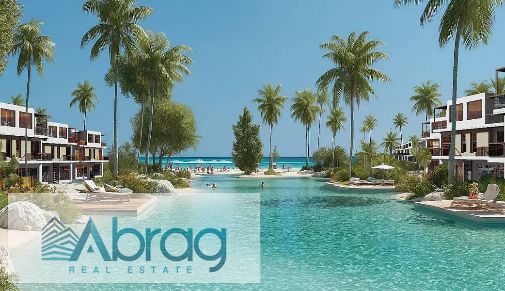 للبيع شاليه 76م على البحر متشطب قسط 10 سنين SHORES موقع حيوى