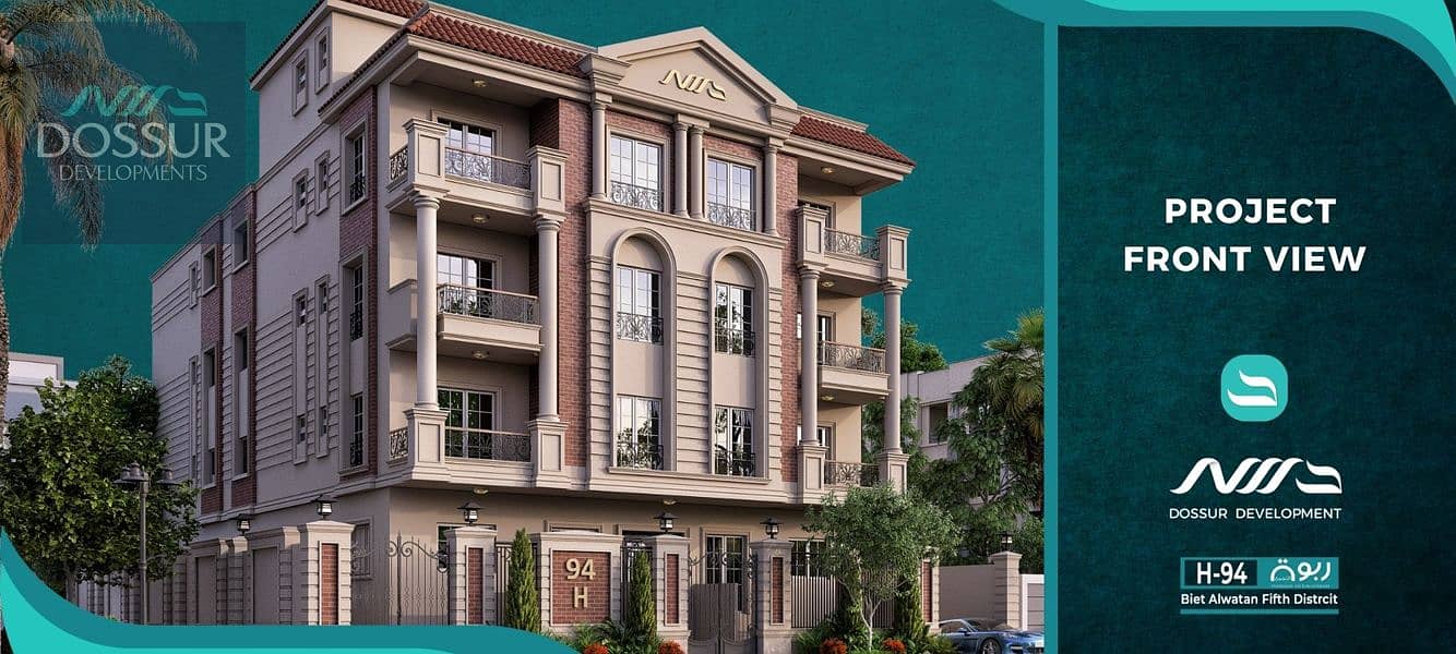 شقتك 200متر عرض نص المقدم مبنيه واستلامك شبه فورى بيت الوطن الحى الخامس موقع مميز واجه على شارع بجوار كمبوند بالم هيلز والفيو زون