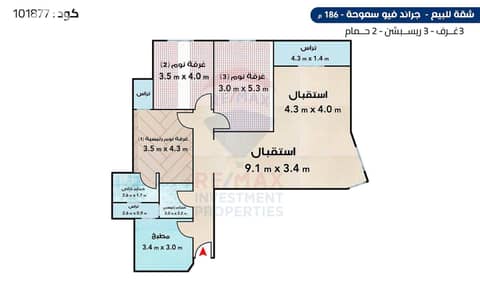 شقة للبيع 186م - سموحة ( جراند فيو )