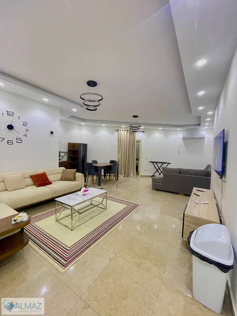 شقة مفروشة للإيجار في البنفسج عمارات بالتجمع الأول، موقع مميز قريب من شارع التسعين والجامعة الأمريكية، منطقة هادئة وشوارع واسعة ومنظمة، قريبة من المول