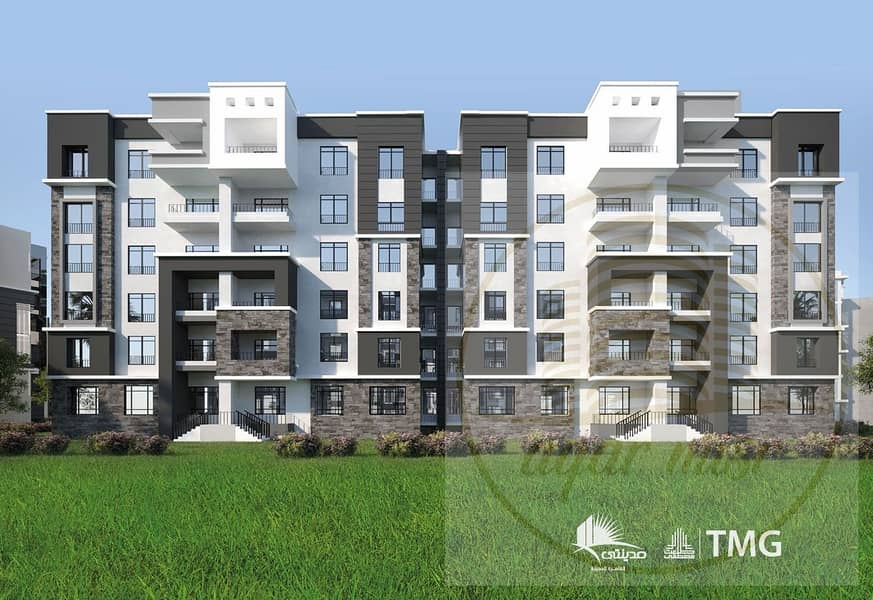 شقة للبيع في مدينتي 115م بالـ B14 فيو جاردن وشارع موقع مميز جدًا، خطوتين فقط من منطقة الخدمات الدور الرابع