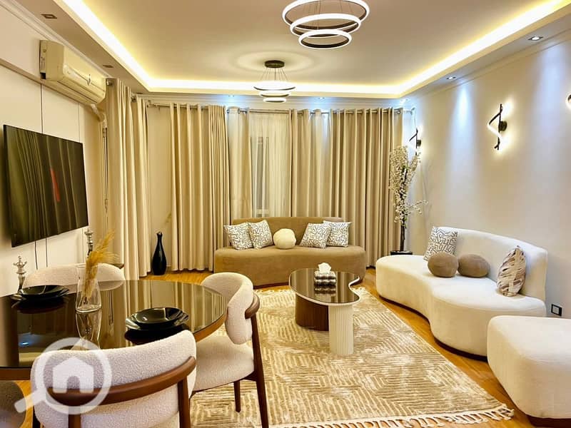 للايجار شقة مفروشة في مدينة الرحاب ستي – المرحلة التاسعة – بجوار مول افينيو وبوابتَي 23 و24 – تشطيب الترا سوبر لوكس فرش مودرن فندقي