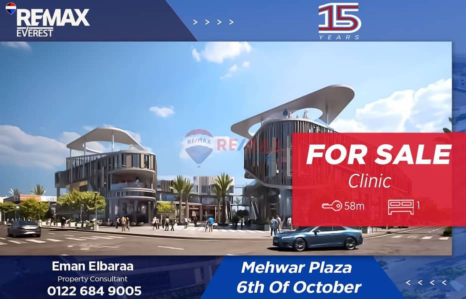 عيادة للبيع في محور بلازا بالمنطقة السياحية – 6 أكتوبر