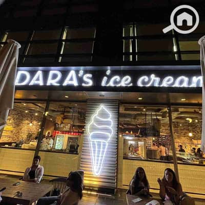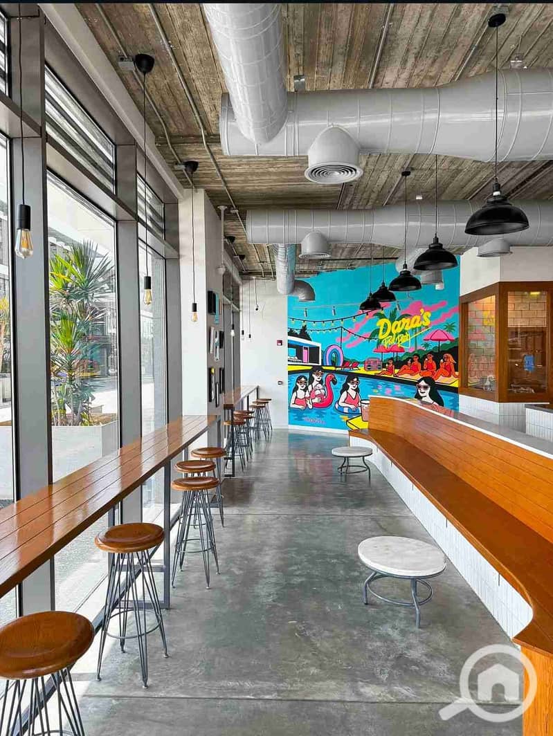 منطقة مطاعم وكافيهات مفتوحة بإطلالات رائعة.