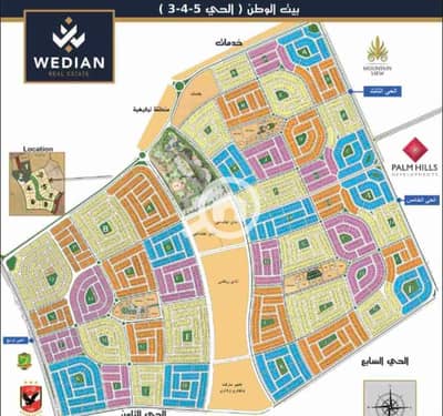 ارض للبيع بيت الوطن الحي الخامس ٧٠٠ م علي شارع فاصل كبير خالصة الثمن