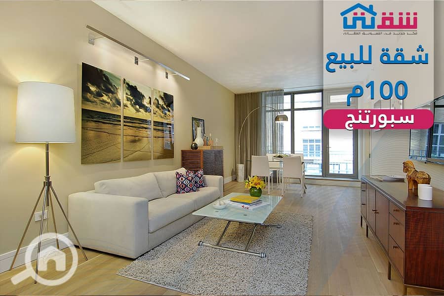 اطلب فيديوشقة للبيع 100م سبورتنج (بحر مباشر)