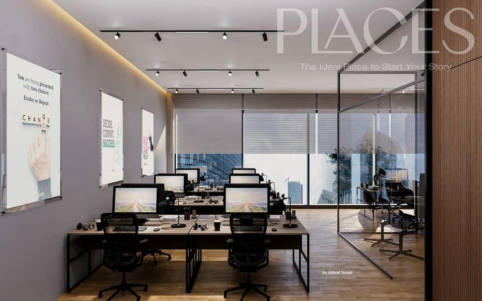 مكتب إداري جاهز للتشغيل فورًا في منطقة أعمال مميزة في ميفيدا بيزنس بارك التجمع الخامس مساحه 117 متر كامل التشطيب