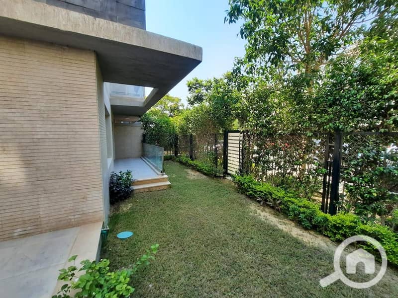 شقه ارضي بجاردن خاص للايجار بالمطبخ والتكييفات والسخانات في كمبوند في قلب التجمع الخامس - القاهره الجديده