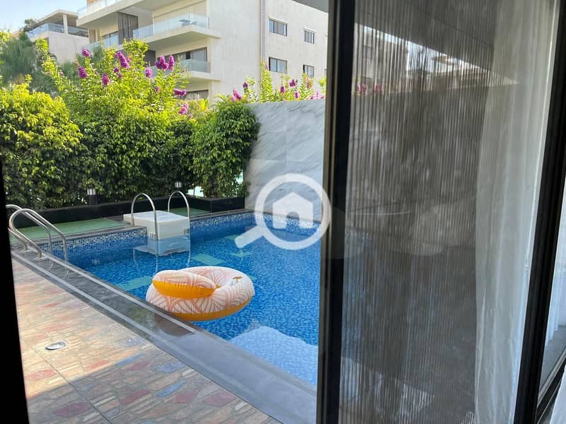 شقة بحمام سباحة خاص . . مفروشة بالكامل . . ليك فيو ريزيدنس