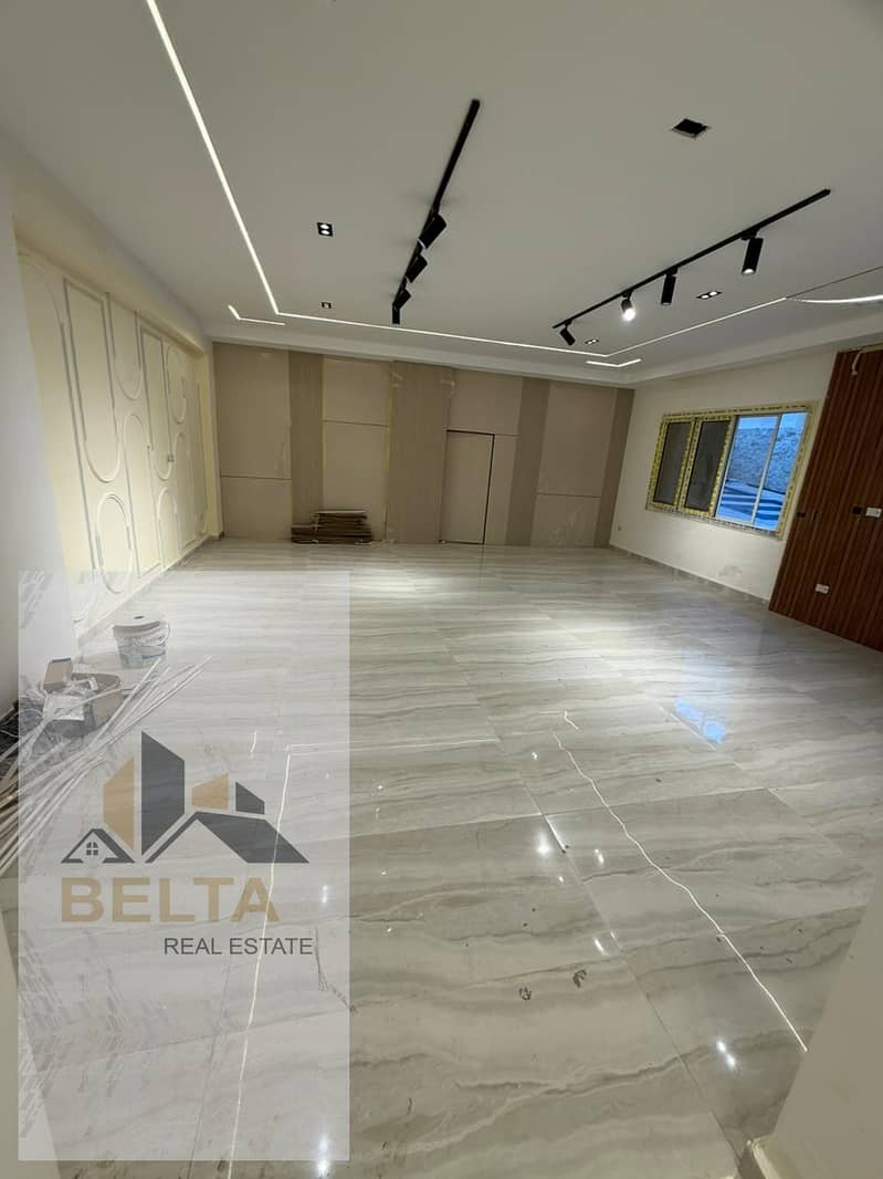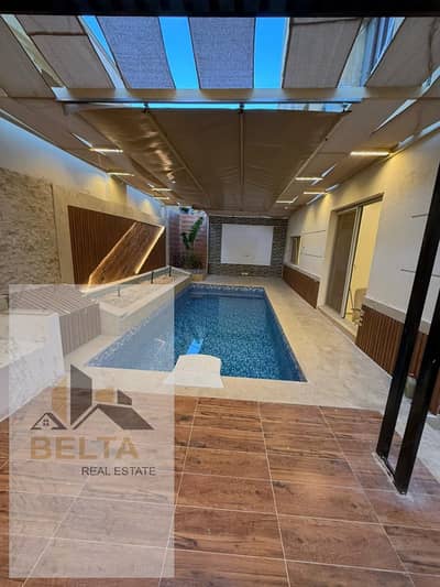 250 متر مساحة داخلية + 250 متر مساحة خارجية تشمل جاردن واسعة وحمام سباحة.