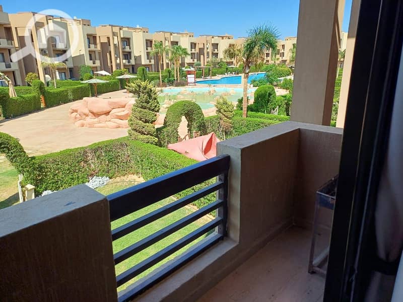 شالية 100 م دور اول - فيو حمام سباحة - مفروش بالكامل بالتكييفات القرية بها جميع الخدمات -اكوابارك - 2 مارينا صيد - مطاعم - كافيهات - حمامات سباحة - سوبر ماركت - سوق تجارى - ممشى سياحى - منطقة العاب اطفال - مخبز - محلات اسماك
