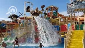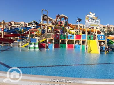 شالية يرى البحر و على حمام السباحة مباشرة مفروش بالكامل بالاجهزة و التكييفات بقرية بها جميع الخدمات الخدات الترفيهية اكوابارك - مارينا صيد - منطقة العاب اطفال -