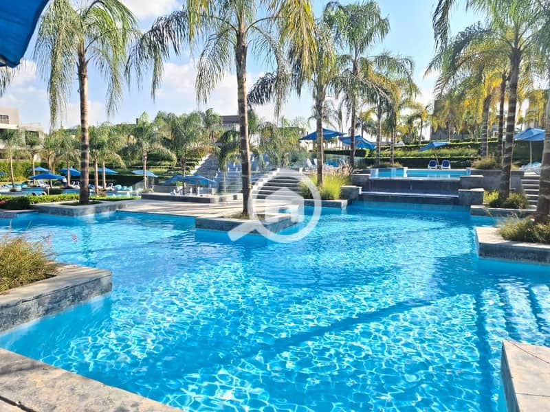 الكمبوند يتميز بالهدوء والرُقي ويضم خدمات متكاملة (حمامات سباحة – مناطق خضراء – أمن وصيانة 24 ساعة).