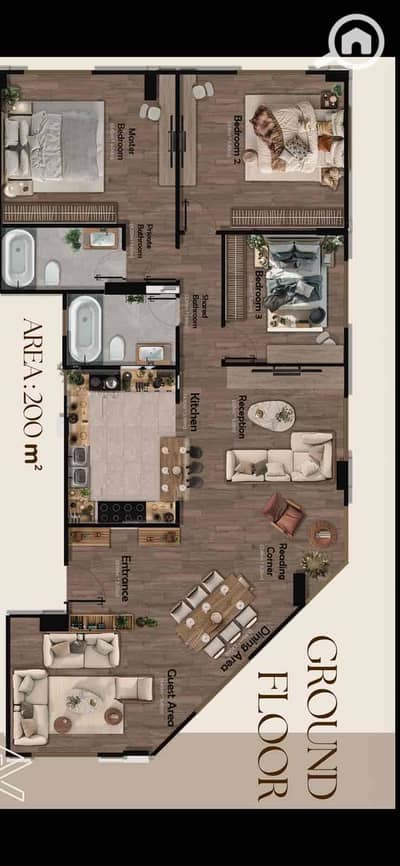 ٣ غرف نوم و٣ حمام ورسبشن كبير