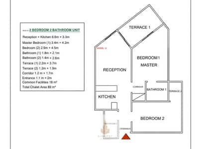 شاليه للبيع بالساحل الشمالي بمساحة 70 متر مربع بالإضافة إلى حديقة خاصة بمساحة 43 متر مربع. الوحدة